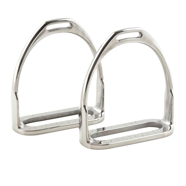 Stainless steel stirrup irons. We usually have a selection of sizes in these and they do usually come with treads (contrary to photograph) €25 (per pair)